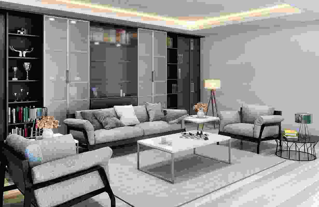 Black & white wooden wall unit for office