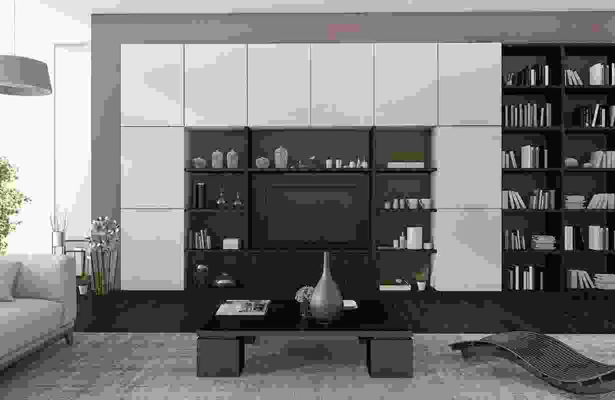 Black & white wooden wall unit for